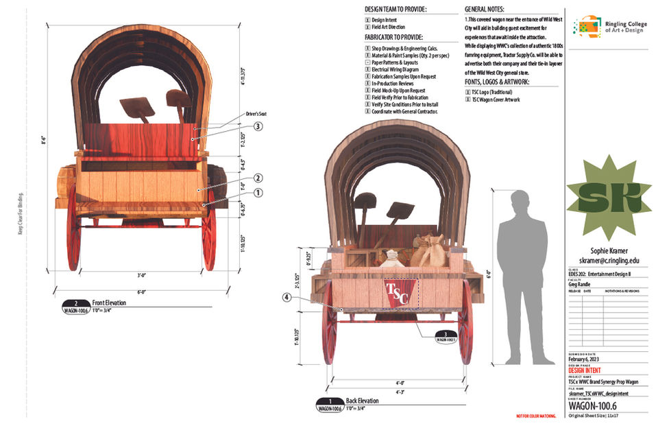 As apart of an academic exploration into brand synergy in themed environments, I created a covered wagon to be used as a prop and set during small live shows to promote aTractor Supply Co overlay of the general store/gift shop at Wild West City in Stanhope, NJ. This piece would allow for Wild West Cityto exhibit some of their authentic Westward Expansion era agricultural tools in tandem with promoting the Tractor Supply Co brand in a space that exemplifies rural living.
